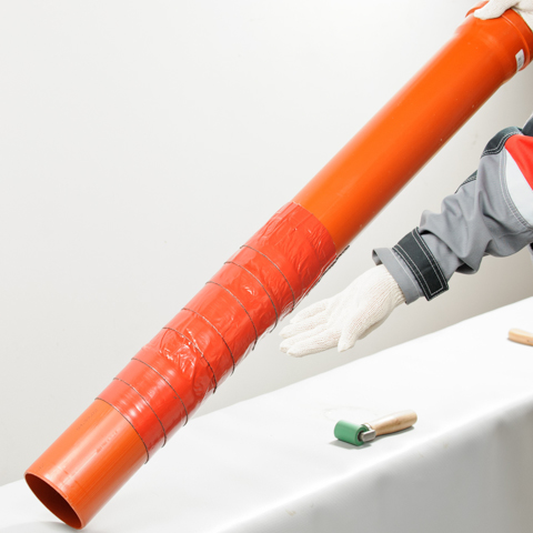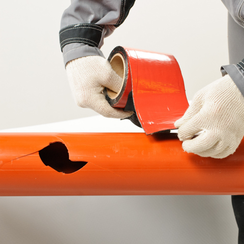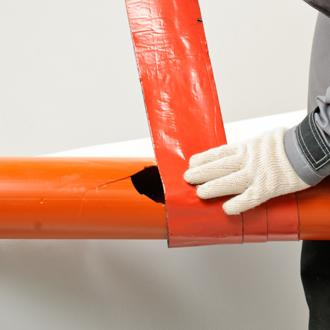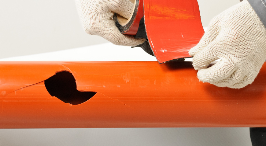 Перед приклейкой материала поверхность необходимо очистить и обезжирить. Температура поверхности и материала должна быть неменее +5°С. Измерьте и отрежьте необходимое количество материала. Для более надежной герметизации лента должна перекрывать отверстие на 3–5 см с каждого края в зависимости от величины повреждения.