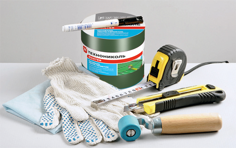 Для укладки NICOBAND вам понадобится инструмент, который найдется в каждом хозяйстве – это рулетка, маркер, нож и валик для прикатки, либо что-то заменяющеего, перчатки и небольшой отрезок ткани.