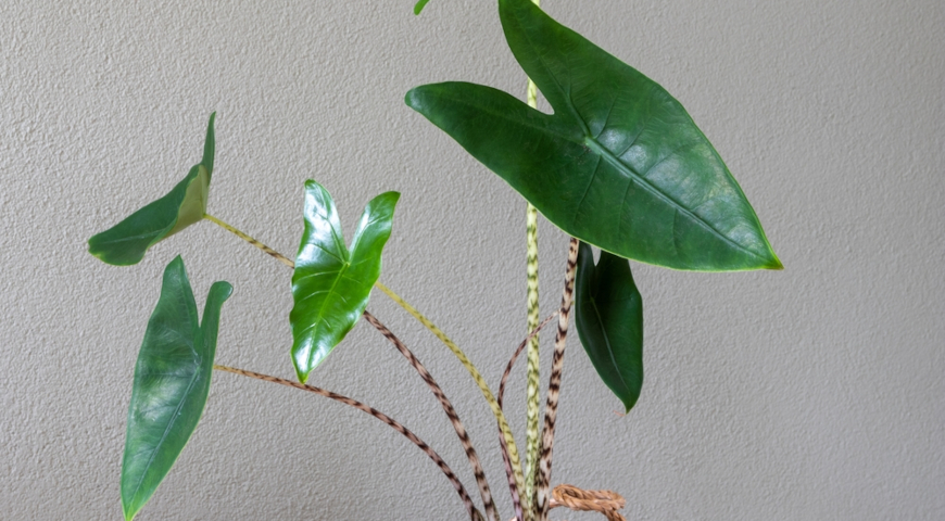Алоказия свинцовая (Alocasia Plumbea) — это коллекционный вид алоказии, известный своими графитово-зелеными или черными листьями с бронзовыми/пурпурными прожилками и изящными, изогнутыми черешками. Хит последних лет – Flying Squid (Летающий Кальмар) — популярная карликовая форма с длинными тонкими стеблями и очень маленькими заостренными листочками на концах.