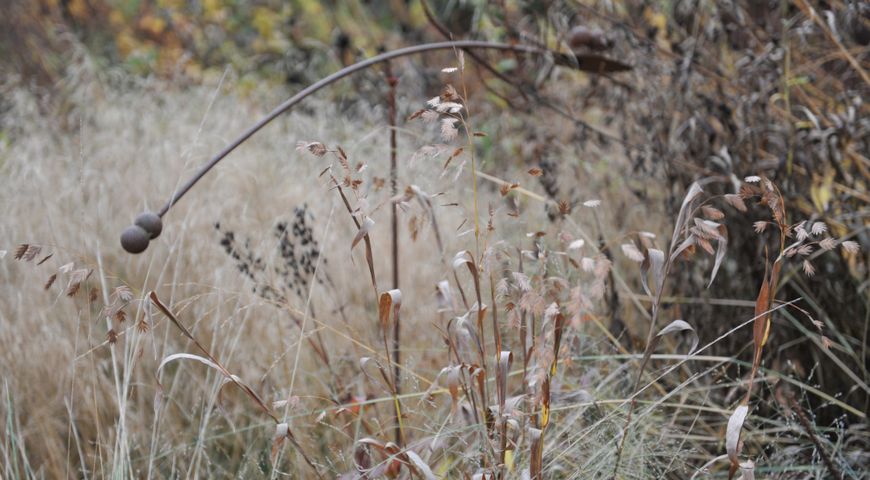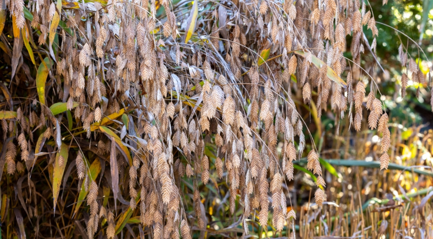 Хасмантиум, плоскоколосник широколистный (Chasmanthium latifolium) в осеннем цветнике
