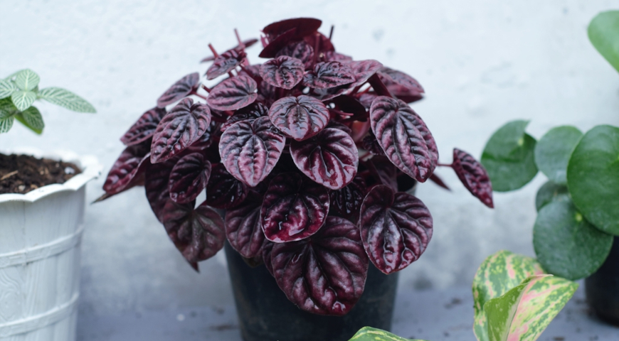 Пеперомия сморщенная (Peperomia caperata)— мелкие сердцевидные листья с сильно выраженной жилкованием и бархатистой поверхностью. Розетка листьев компактная, около 15 см, подходит для небольших полок или узких подоконников. Вид дал огромное количество декоративных сортов в розоватой, бордовой, даже темно-персиковой гамме: Advice, Rosso, Cream Brulee, Luna Red, Amazonas и Montevideo (листья крупные, слегка удлиненные), Black Ripple, Brasilia и Caracas (листья черно-зеленые сверху, темно-розовые с изнанки), Buenos Aires (с кремово-розовыми разводами и размытыми крапинками), Burbella (серо-зеленые листья с темно-зелеными прожилками), Cayenne (бордово-красные), Pink Lady (розовые, кремовые тона), Schumi Red (красновато-бордовые).