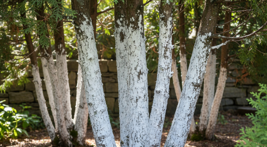 Во-вторых, известь обладает щелочной реакцией, которая может повредить клетки коры молодых побегов. Особенно опасна побелка в весенний период, когда растения активно растут и уязвимы. Химический ожог коры станет входными воротами для патогенов и спровоцирует развитие грибных и бактериальных инфекций, которые сложно вылечить.