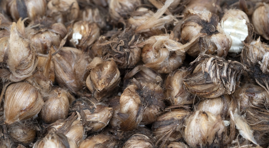 - Повышенная температура хранения приводит к пересыханию клубнелуковиц, а пониженная (ниже 0ºС) приведет к гибели.