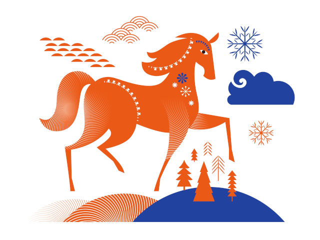 Красная горячая Лошадь сметает все на своем пути, постарайтесь ее притормозить. Поэтому используйте белый, черный, синий и конечно золотой цвета в новогоднем наряде.