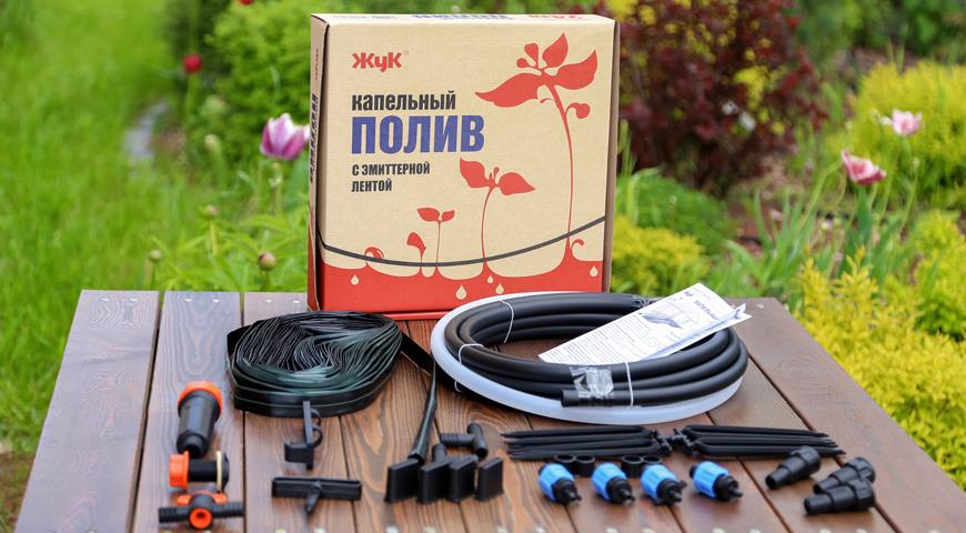 По комплектации можно выбрать стрелки-капельницы, либо эмиттерные ленты. Эмиттерные ленты проще капельниц - разложил ленту между кустами, и забыл. Но и срок службы у них гораздо короче, всего 2-3 года, материал изготовления менее прочный и отсутствует возможность прочистить при забивании отверстий подачи воды.