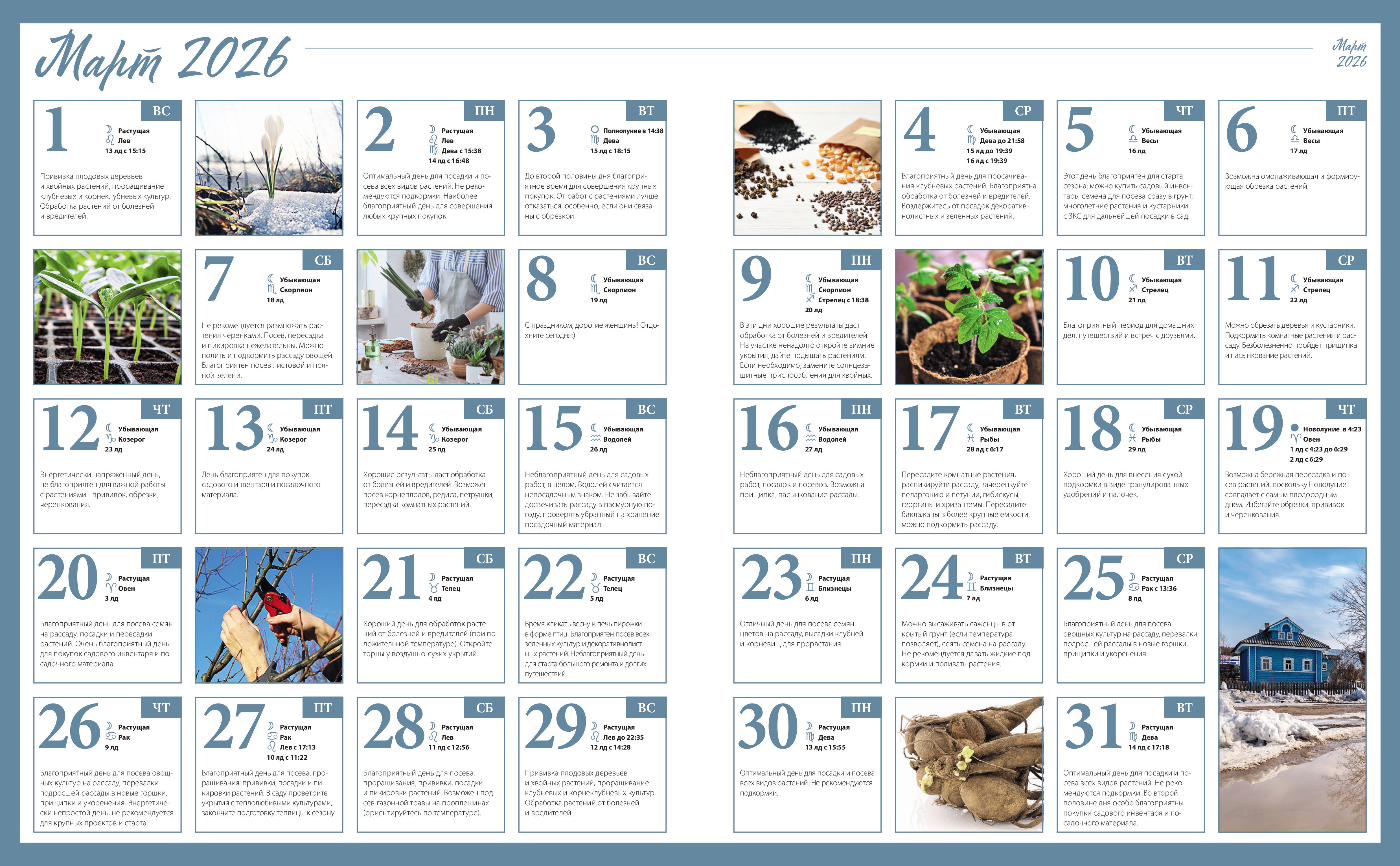 Лунный календарь посевов на март 2026
