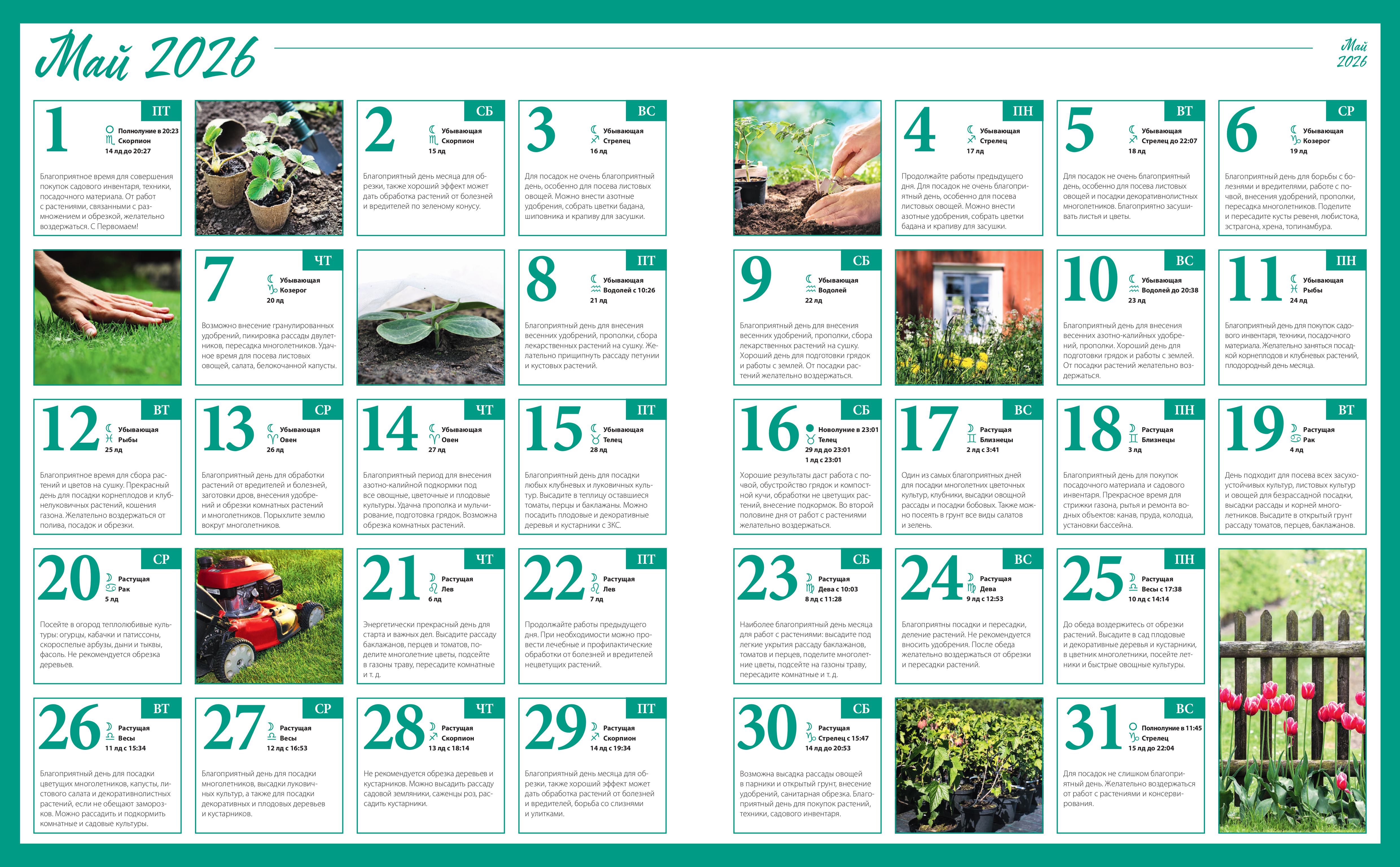 Лунный календарь посевов на май 2026