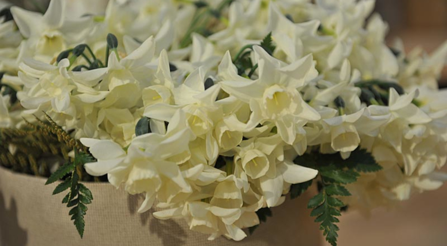 Махровый сорт. Цветок округлый, диаметром 80 мм, белый околоцветник и другие лепестковидные доли в двух или более мутовках, с выступающей средней жилкой. Коронка длиной 25 мм, в нескольких мутовках, сильно вогнутая, вкрапленная между внутренними долями околоцветника. Нуждается в полном солнце, отличается сильным ароматом.